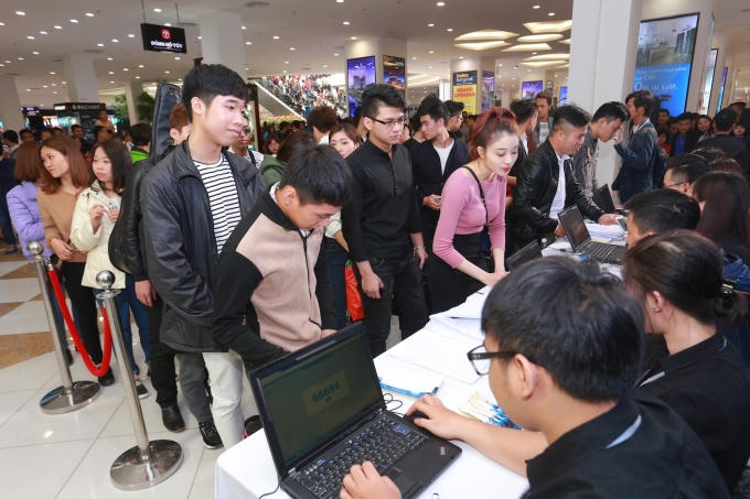 Không chỉ tập trung xếp thành nhiều hàng dài để đăng ký dự thi vào sáng sớm, càng về gần cuối ngày, số lượng thí sinh lại càng tăng khiến cho các thành viên trong Ban tổ chức phải làm việc liên tục để đảm bảo việc sắp xếp thí sinh vào dự thi được diễn ra một cách nhanh chóng nhất.