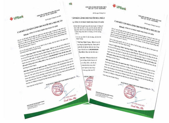 Theo Điều 56, Luật Kinh doanh bất động sản năm 2014, chủ đầu tư dự án bất động sản trước khi bán, cho thuê mua nhà ở hình thành trong tương lai phải được ngân hàng thương mại có đủ năng lực thực hiện bảo lãnh nghĩa vụ tài chính của chủ đầu tư, đối với khách hàng khi chủ đầu tư không bàn giao nhà ở theo đúng tiến độ đã cam kết với khách hàng.