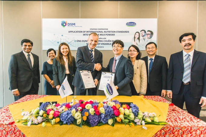 Ngày 13/9/2016, tại trụ sở chính của DSM khu vực Châu Á – Thái Bình Dương ở Singapore, Công ty cổ phần Sữa Việt Nam (Vinamilk) và Tập đoàn DSM Thụy Sĩ đã ký kết Hợp tác chiến lược “Ứng dụng dinh dưỡng chuẩn quốc tế vào sản phẩm sữa bột Vinamilk”.