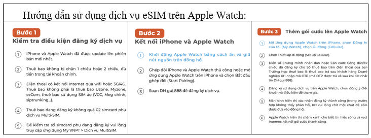 Để sử dụng dịch vụ eSIM trên Apple Watch của VinaPhone, khách hàng cần đảm bảo các điều kiện sau: