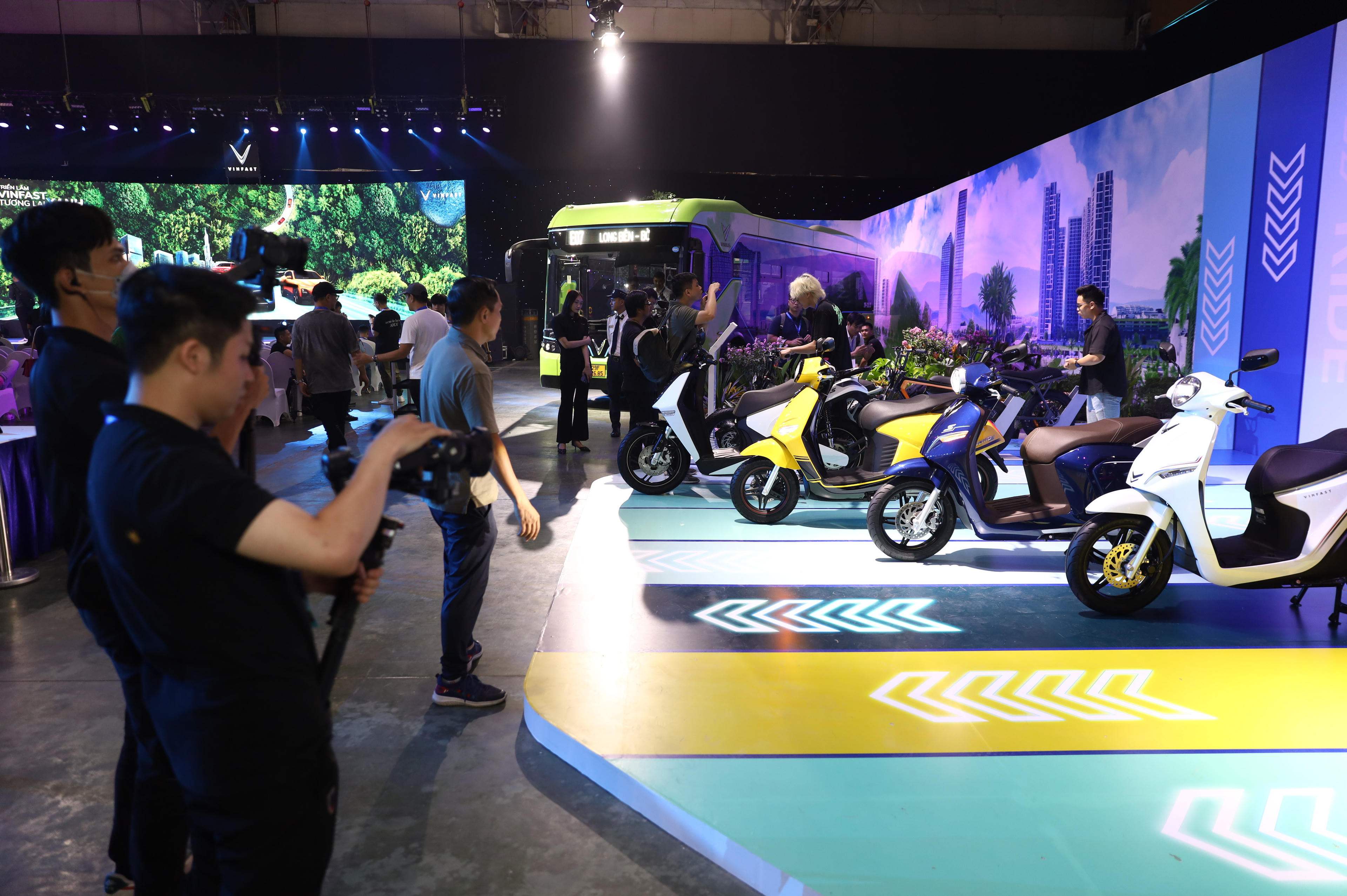 Tại triển lãm đầu tiên diễn ra tại Hà Nội (7/7 - 9/7/2023), VinFast lần đầu giới thiệu tới người tiêu dùng nội địa toàn bộ dải sản phẩm xe điện hoàn chỉnh, gồm xe đạp điện, xe máy điện, ô tô điện và xe buýt điện.