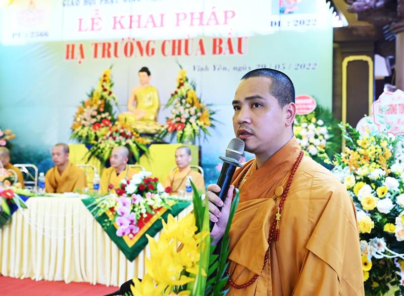 Thượng tọa đã chia sẻ cho đại chúng hiểu về tầm quan trọng của việc an cư kiết hạ đối với người đệ tử xuất gia và tại gia Đồng thời, Thượng tọa đã giảng giải cho đại chúng về sơ lược của bộ kinh Đại Phương Tiện Phật Báo Ân. Đây cũng chính là đoạn nói tóm tắt về ý nghĩa của quyển Kinh này. Nhân đây Thượng tọa đã bày tỏ sự quan tâm đặc biệt đối với sự nghiệp Hoằng pháp, hướng dẫn Phật tử, thông tin truyền thông... để Phật giáo tỉnh nhà ngày càng phát triển.