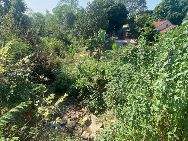 Điểm cống xả tràn mới hiện tại nằm trên đất của bà Tạ Thị Loan, cách cống xả tràn cũ khoảng 50m. Phần bê tông máng xả tràn hư hỏng nặng, bê tông đáy máng bị nước cuốn trôi, gây sạt lở luồng tiêu và sạt lở vào đất vườn, đất sản xuất của người dân.