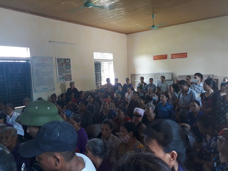 Người dân tập trung tại nhà văn hóa thôn Can Bi thảo luận về việc DTĐR