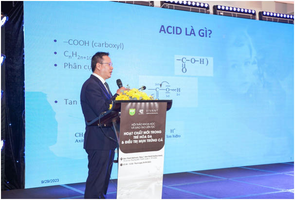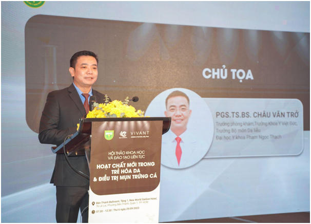 Mở đầu buổi Hội thảo, PGS.TS.BS. Châu Văn Trở - Chủ tọa đã chỉ ra những tiềm năng mới trong chăm sóc da mụn và lão hóa hiện đang là chủ đề được rất nhiều bác sĩ da liễu quan tâm. Bên cạnh những hoạt chất điều trị quen thuộc, những nghiên cứu mới cũng được cập nhật thông qua 4 bài báo cáo khoa học chuyên sâu từ 4 bác sĩ diễn giả.