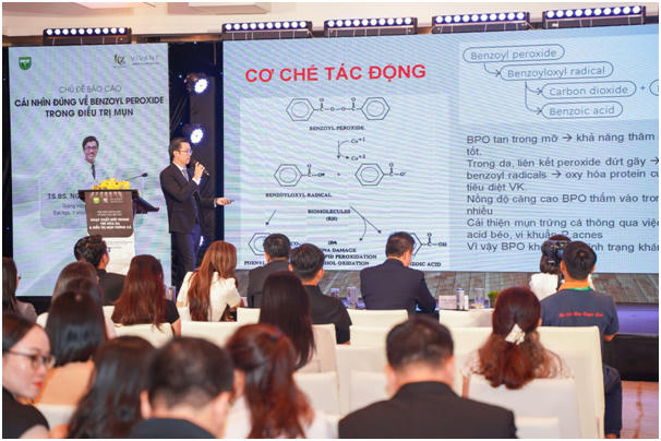 Ngoài ra, BPO cũng có khả năng tẩy tế bào chết nhẹ với khả năng giải phóng CO2 làm thông thoáng lỗ chân lông, giảm quá trình sừng hóa, làm bong sừng trên bề mặt. FDA chỉ định nồng độ BPO cho phép trong các sản phẩm bôi ngoài da là 2.5%, 5%, 10%, có thể coi là an toàn cho trẻ nhỏ và phụ nữ mang thai, cho con bú. Những thông tin về cách sử dụng BPO và một số lưu ý đã được TS.BS. Nguyễn Ngọc Trai báo cáo chi tiết tại hội thảo.