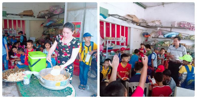 Vợ chồng thầy Bá phục vụ bữa ăn sáng miễn phí cho các học sinh nghèo.