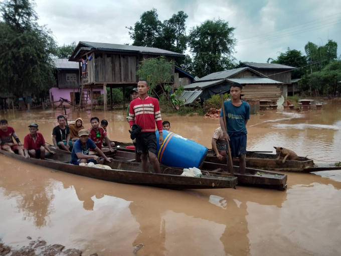 Chiều 26 - sáng 27/7, tại vùng rốn lũ thuộc huyện Sanxay (tỉnh Attapeu, Lào) đội cứu hộ đã huy động nhiều xe ô tô, ca nô đưa đồ tiếp tế cho người dân và tiến hành đưa người dân tại các thôn bản bị mắc kẹt ra khỏi vùng bị ngập vỡ đập thủy điện đến nơi an toàn.