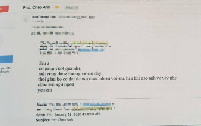 Trong các vi bằng này có những Email thể hiện tình cảm thân mật “không trong sáng” trên mức bình thường của ông C và bà N, không hiểu vô tình hay cố ý, chúng đều được chuyển tiếp cho bà V đọc nên bà V mới có các nội dung này. Trong đó có các mail được cho là từ Email của bà N gửi ông C như: “Anh than yeu,