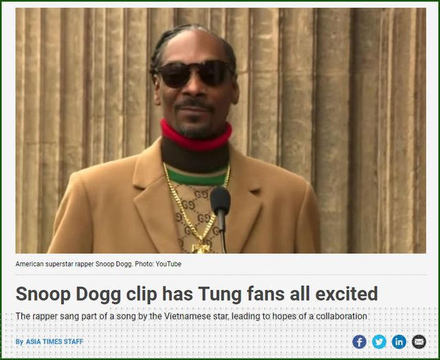 Trang tin giải trí Asia Times giới thiệu về MV mới của Sơn Tùng với sự cộng tác của rapper Snoop Dogg.