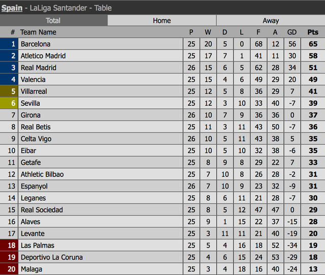 Thất bại 0-1 tại xứ Andalucia, Real Madrid vẫn đứng thứ 3 với 51 điểm, kém Atletico 7 điểm và Barcelona 14 điểm. Cách biệt này hoàn toàn có thể được nới rộng, nếu hai đối thủ này cùng thắng ở loạt trận giữa tuần.