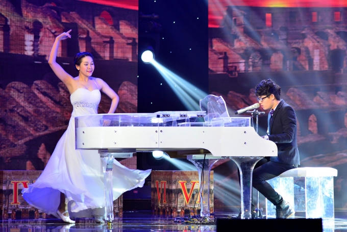 Nếu như ở vòng thi trước, cô nàng thể hiện tài năng chơi guitar thì ở vòng thi này, cô thể hiện tài năng đánh đàn piano.