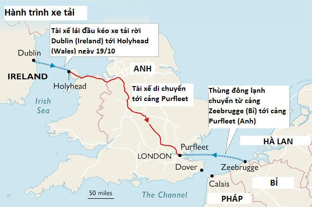 Trước đó vào rạng sáng 23/10, cơ quan cứu thương hạt Essex, đông bắc thủ đô London của Anh, nhận được cuộc gọi trình báo về một phát hiện ghê rợn bên trong thùng container trên chiếc xe đang đỗ ở khu công nghiệp Waterglade, thị trấn Grays. Khi các nhân viên y tế mở cửa thùng xe, họ phát hiện thi thể 38 người lớn và một thiếu niên, được cho là người nhập cư.