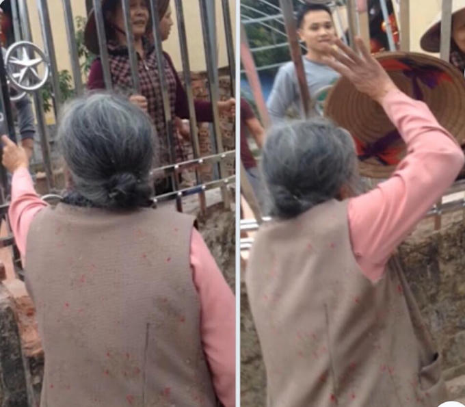 Hình ảnh bà Bình giằng co rào sắt được người dân ghi lại. (Ảnh cắt từ clip)