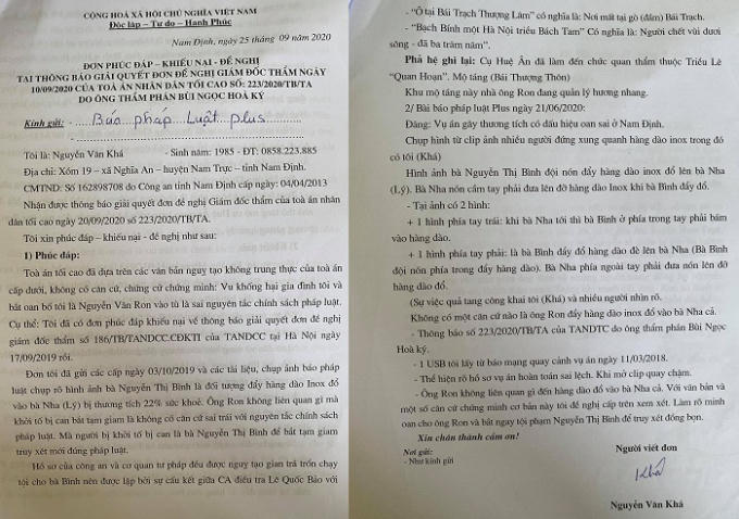 Liên quan đến vụ án cố ý gây thương tích có dấu hiệu oan sai ở Nam Trực, Nam Định, mới đây, anh Nguyễn Văn Khá - con trai ông Nguyễn Văn Ron vừa có đơn phúc đáp, đề nghị, khiếu nại gửi các cơ quan chức năng về nội dung thông báo giải quyết đơn đề nghị giám đốc thẩm của anh trong vụ án.