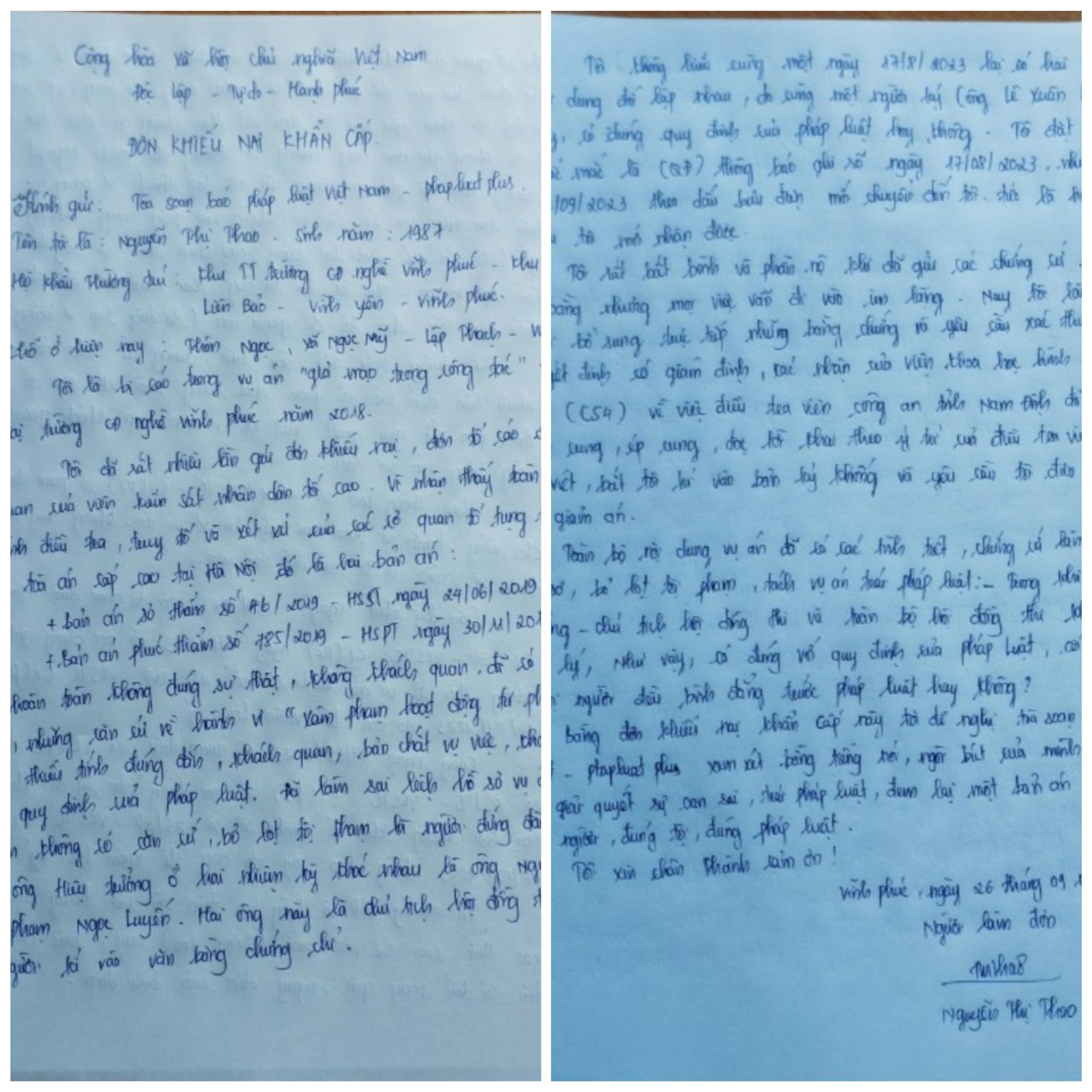 Đây là lá đơn thứ 2 bị cáo Thao gửi tới tòa soạn Pháp luật Việt Nam- phapluatplus.
