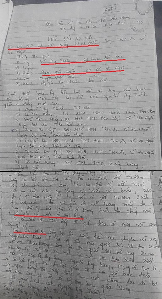 Biên bản vụ việc được Công an huyện Bảo Lâm và xã Lộc Ngãi lập tại hiện trường có dấu hiệu tạo dựng, nhiều nội dung mâu thuẫn thiếu thống nhất.
