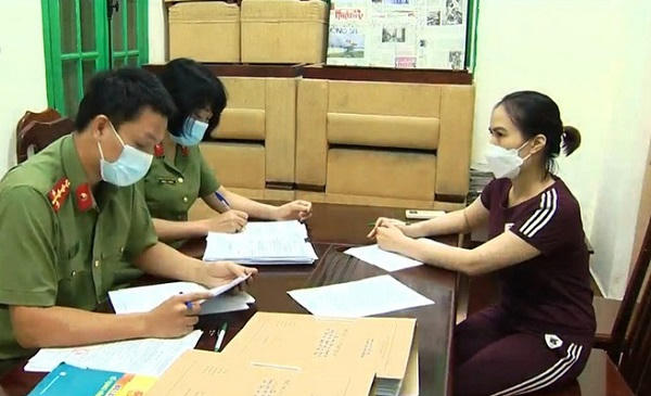 Bị can Hoàng Thị Thanh Nga làm việc với cơ quan điều tra (Ảnh: VTV).