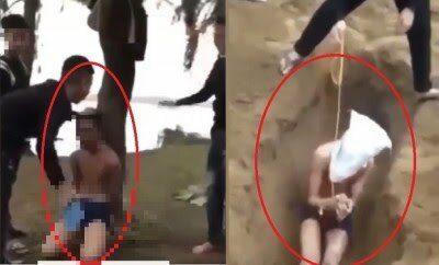 Hình ảnh nam thanh niên bị bắt, "chôn sống".