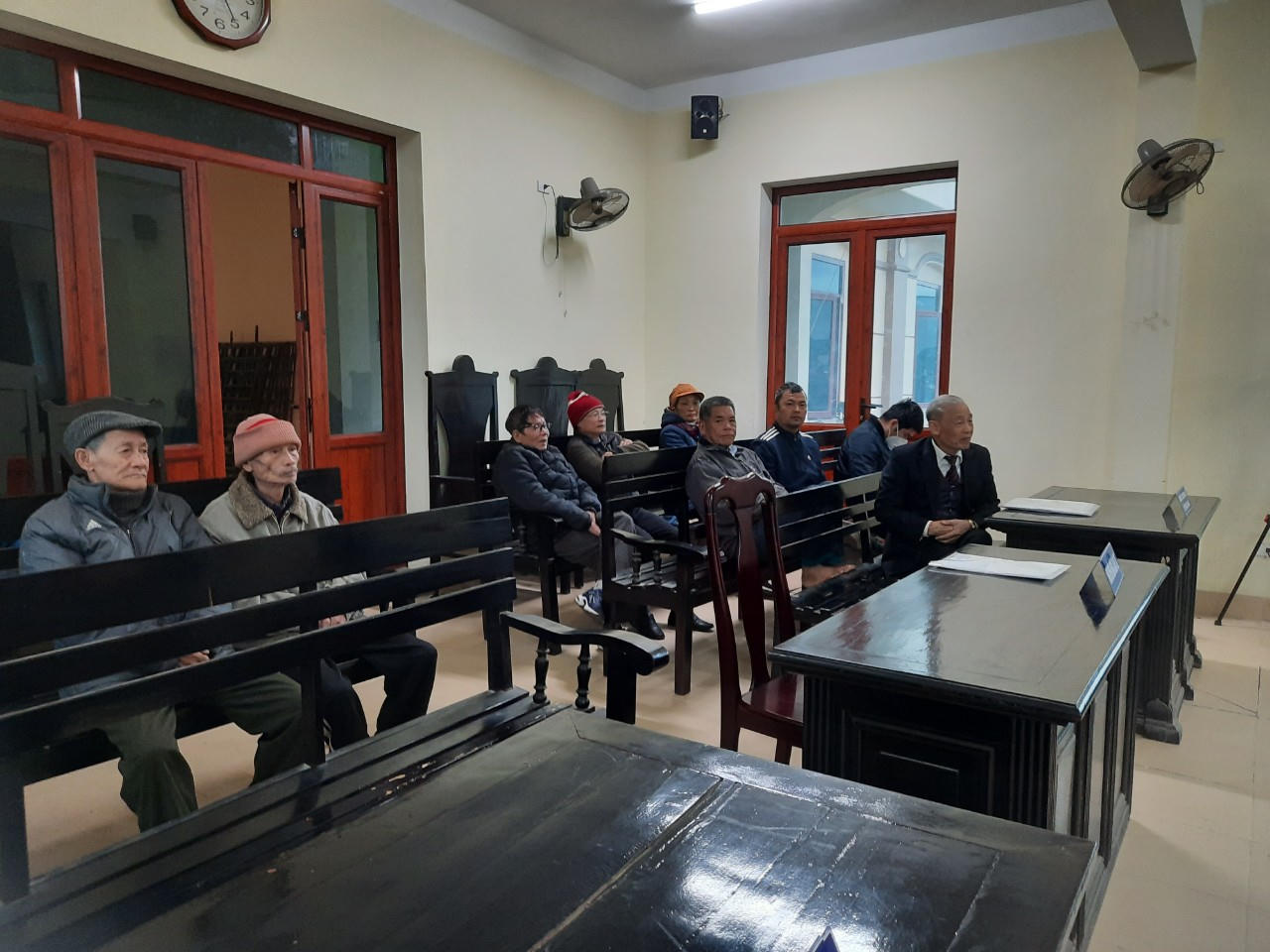 Mặc dù trời mưa và rét đậm nhưng hơn 10 người dân đã có mặt tại phiên tòa để làm chứng trong vụ án sơ thẩm về việc công dân kiện Chủ tịch huyện. Tuy nhiên, giống như phiên sơ thẩm trước đó, phía bị đơn là UBND huyện Sơn Dương tiếp tục vắng mặt.