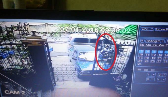 Tất cả những hàng động của đối tượng trộm chiếc xe chở vàng của hộ gia đình ông Vũ Đức Phi đều đuợc một camera của gia đình ông này ghi lại.
