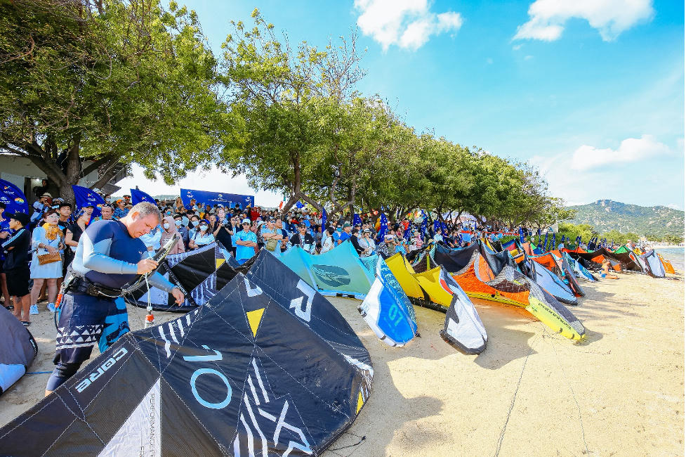 Hàng nghìn du khách và người dân đã đứng dọc 2 km bờ biển thôn Mỹ Hòa, xã Vĩnh Hải (Ninh Hải, Ninh Thuận) hò reo cổ vũ trước những màn biểu diễn đẹp nhất, ấn tượng nhất của các vận động viên trong nước và quốc tế.