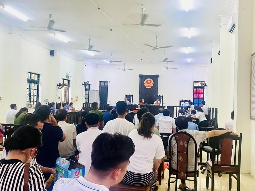 Ngày 2/7, TAND thị xã Bỉm Sơn mở phiên toà xét xử các bị cáo Nguyễn Huy Hùng (SN 1973), Đặng Thị Hồng Lý (SN 1975) cùng có địa chỉ thường trú (tại TDP số 4 Phú Mỹ, phường Mỹ Đình 2, quận Nam Từ Liêm, Thành phố Hà Nội), bị cáo Trịnh Văn Khánh (SN 1966, ở khu phố 6, phường Lam Sơn, thị xã Bỉm Sơn, tỉnh Thanh Hoá), Tống Duy Tân (SN 1984, Khu phố 4, phường Ba Đình, thị xã Bỉm Sơn, tỉnh Thanh Hoá), Tống Dũng Nhật (Sn 1970, Khu phố Sơn Nam, phường Đông Sơn, thị xã Bỉm Sơn, tỉnh Thanh Hoá), Hoàng Văn Vượn (SN 1958, khu phố 4, phường Lam Sơn, thị xã Bỉm Sơn, tỉnh Thanh Hoá), Vũ Bá Triển (SN 1988, thôn Mỹ Xuyên, huyện Vĩnh Yên, huyện Vĩnh Lộc, tỉnh Thanh Hoá), Trịnh Văn Táo (SN 1960, thôn Bắc Sơn, xã Hà Bắc, huyện Hà Trung, tỉnh Thanh Hoá), Lê Văn Duật (SN 1975, thôn 8, xã Vĩnh Hưng, huyện Vĩnh Lộc, tỉnh Thanh Hoá), Khương Phú Hưng (SN 2002, khu 5, thị trấn Kim Tân, huyện Thạch Thành, Thanh Hoá).