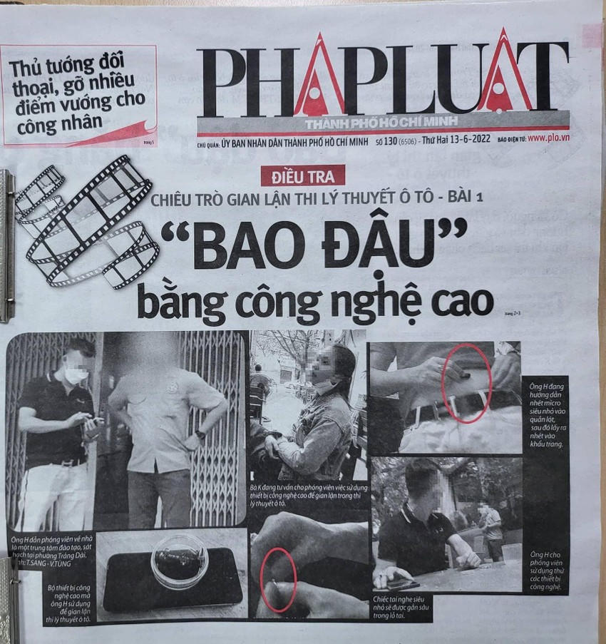 Công văn của Sở GTVT TP.HCM nêu rõ, ngày 13 và ngày 14 tháng 6 năm 2022, Báo Pháp luật TP.HCM có loạt bài “Chiêu trò gian lận thi lý thuyết ô tô” phản ánh tình trạng một số đối tượng “cò” và giáo viên tại các cơ sở đào tạo lái xe quảng cáo, hướng dẫn và trợ giúp học viên thực hiện các hành vi gian lận khi tham dự kỳ sát hạch bằng các thiết bị công nghệ cao.