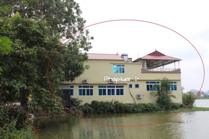 | Nhàng hàng đồ sộ được xây dựng nhô ra giữa hồ Quan Sơn, vi phạm hành lang bảo vệ đê. |