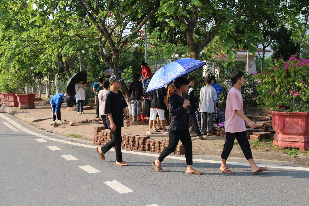 Điều đáng nói, khu vực công trường các học sinh tham gia lao đông không hề có biển cảnh báo, không căng dây, không thông báo thời gian thực hiện… nên ngoài ảnh hưởng đến sức khoẻ do thời tiết nắng nóng, còn tiềm ẩn nguy cơ mất an toàn giao thông.