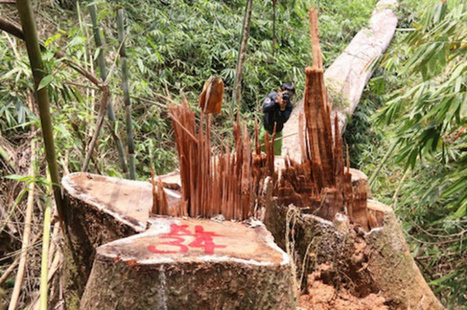 Trước đó, vào hồi cuối tháng 3/2018, cơ quan chức năng phát hiện 34 cây gỗ lim xanh tại tiểu khu 335, rừng phòng hộ Nam Sông Bung bị chặt hạ.