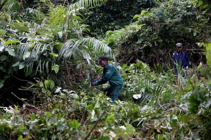 Tại hiện trường, hộ ông Mạnh có phát quang cây bụi và dây leo từ khu vực suối Om về phía Bắc với chiều dài khoảng 200m, chiều sâu từ 20-30m và có tập kết một số cây giống là xoài và mít để chuẩn bị trồng.