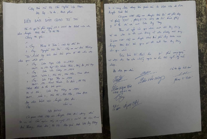 | Biên bản bàn giao tử thi cho gia đình nạn nhân. |