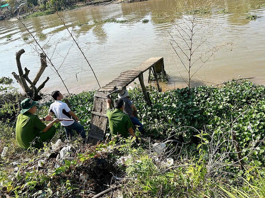 Khoảng 30 phút sau, người nhà của ông Th. phát hiện chiếc xe đạp của ông Th. dựng bên lề đường. Nghi vấn ông Th. có thể té xuống sông nên người nhà mò tìm.