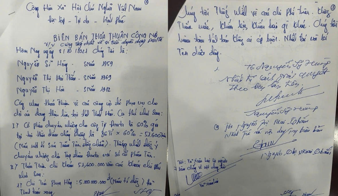 Nói về việc bà Nguyễn Thị Mai Thắm giải trình với báo PLVN, về việc các cổ đông sau khi chuyển nhượng cổ phần đã có văn bản đồng ý sử dụng tiền bán cổ phần đó, vào thanh toán các khoản chi phí chung của công ty, bà H. cho hay: “Đến nay, tôi khẳng định chưa có bất cứ thoả thuận nào với bà Thắm ngoài uỷ quyền cho bà Thắm và cam kết của bà Thắm chuyển trả ngay sau khi nhận được tiền từ công ty Delta.”