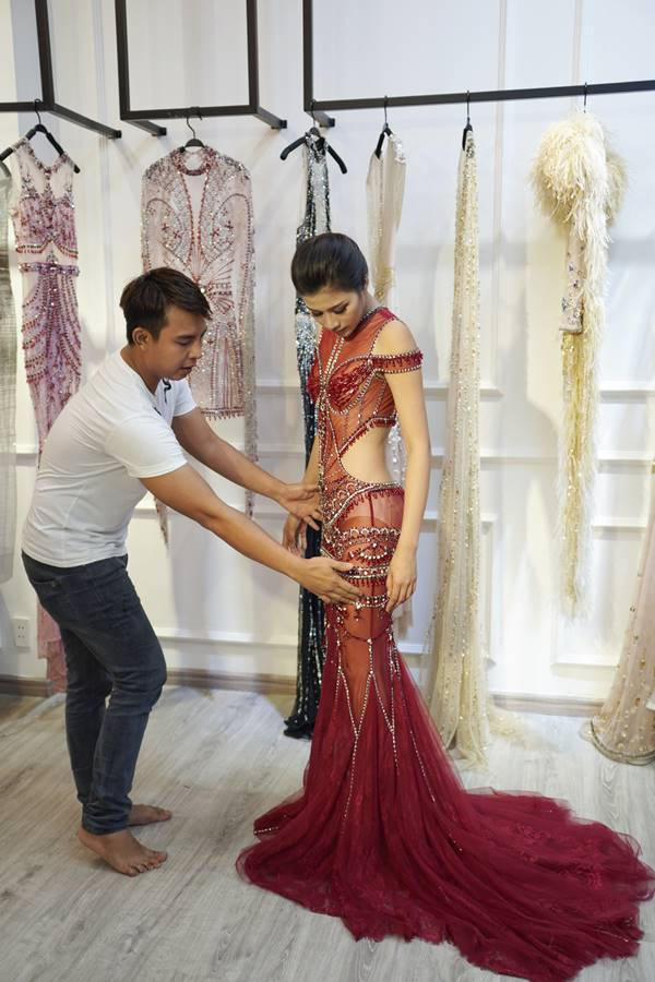 Trong buổi tới thử đồ tại showroom của NTK Đỗ Long, Nguyễn Thị Thành đã được NTK tuổi trẻ tài cao này chăm sóc rất kỹ lưỡng. Không chỉ tư vấn và chọn mẫu cho Nguyễn Thị Thành, Đỗ Long còn rất vui vẻ và nhiệt tình giúp người đẹp chỉnh sửa lại trang phục và lựa chọn những phụ kiện phù hợp, để cô có thể tỏa sáng nhất trong ngày ra mắt công ty sẽ diễn ra vào cuối tháng 6 này tại thành phố biển Đà Nẵng.
