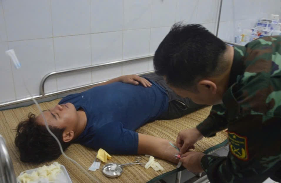 Trong đó, 2 ngư dân (Huỳnh Ngọc Thân, sinh năm 2003 và Lê Tuấn Gương, sinh năm 1997, quê ở Tân Mỹ, Nghĩa An, Quảng Ngãi) nhiễm độc nặng, bị tụt huyết áp, mạch chậm. Các bác sĩ đã kịp thời cấp cứu truyền dịch và tiêm thuốc cho các ngư dân.