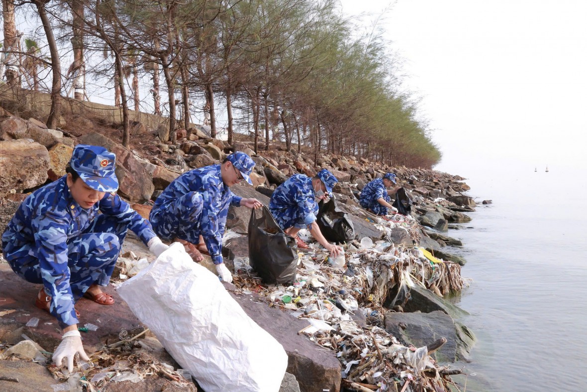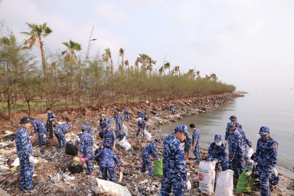 | Đoàn viên, hội viên các cơ quan, đơn vị BTL Vùng Cảnh sát biển 4 tích cực tham gia vệ sinh môi trường biển |