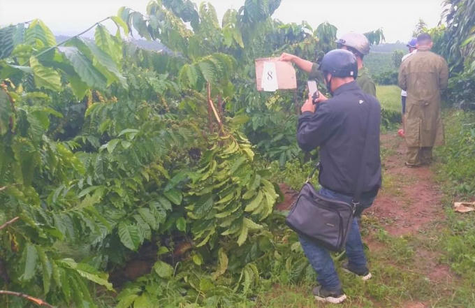 Theo đó, sáng cùng ngày, anh Vũ Xuân Hải được hàng xóm báo tin vườn cà phê của gia đình anh bị chặt hạ. Anh Hải đến kiểm tra vườn và trình báo cơ quan chức năng địa phương.
