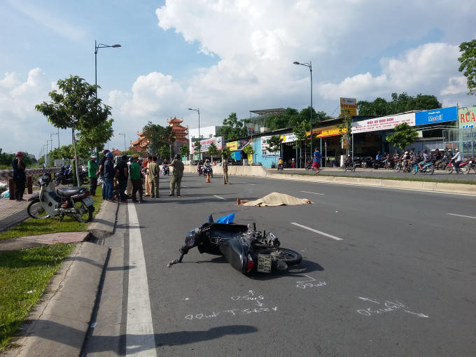 "Khi còn cách giao lộ Tô Ngọc Vân, phường Linh Tây, Quận Thủ Đức khoảng 100m thì nam thanh niên cho xe máy vượt lên hai xe máy khác thì va chạm vào bên phải đầu xe ô tô 7 chỗ biển số 51A-67709 chạy cùng chiều" - theo các nhân chứng cho biết.