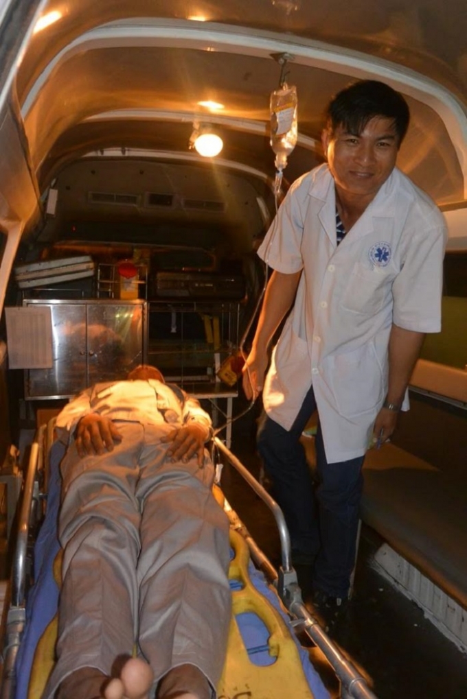 Thuyền viên tên Nguyễn Trung (SN 1985, trú thôn Thạnh Đức 1, xã Phổ Thạnh, huyện Đức Phổ, Quảng Ngãi) bị chân vịt chém đứt tai, tình trạng hiện tại lúc tỉnh lúc mê. Tàu yêu cầu cứu nạn khẩn cấp.