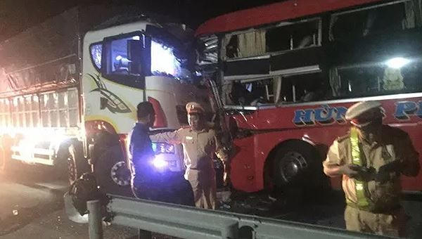 Vượt xe khách lao đầu vào ô tô tải, tài xế tử vong, hơn 10 người nhập viện