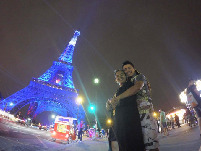 Đầu tiên, cặp đôi đã kịp có mặt tại Paris - Pháp ngay ngày 10/06 để cùng hòa vào dòng người khắp thế giới chào đón lễ khai mạc Euro 2016 dưới chân tháp Eiffel Paris.