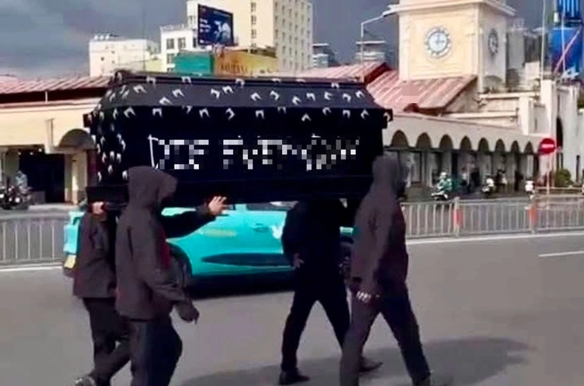 Ngày 2/3, người dùng mạng xã hội lan truyền clip ghi lại cảnh 4 người mặc đồ màu đen, trùm kín đầu, khiêng quan tài đi bộ xung quanh các tuyến đường ở khu vực chợ Bến Thành.