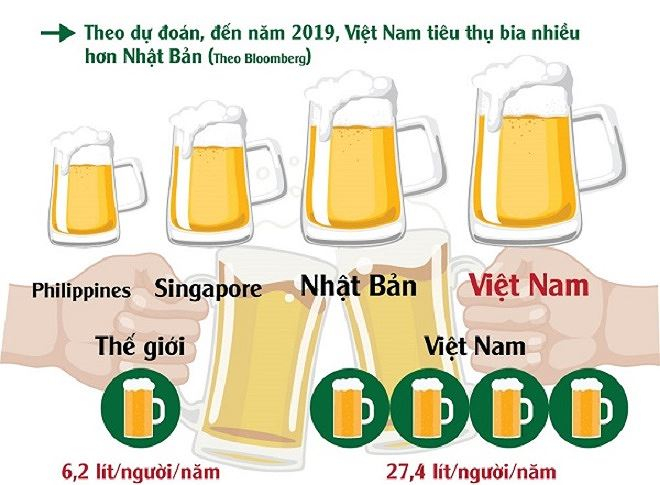 Bộ Y tế từng cảnh báo Việt Nam là nước tiêu thụ bia cao nhất Đông Nam Á và thứ 3 châu Á sau Nhật Bản, Trung Quốc. Euromonitor dự báo lượng bia tiêu thụ tại Việt Nam dự báo tăng trưởng 5%/năm cho đến 2022.