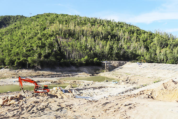 Các đơn vị thi công trong khu vực hồ Đồng Bò chiều 25-9
