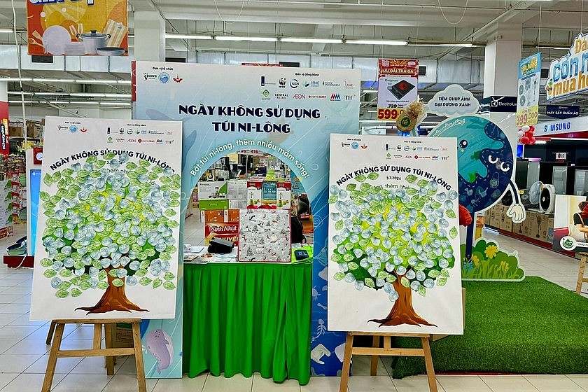 | Hưởng ứng “Ngày quốc tế không sử dụng túi ni-lông” diễn ra vào ngày 3/7 hàng năm, Viện Chiến lược, Chính sách tài nguyên và môi trường và Sở Công Thương Thành phố Hà Nội đã phát động tổ chức chiến dịch năm 2024 với thông điệp “Bớt túi ni-lông, thêm nhiều mầm sống”. Xuyên suốt chiến dịch, nhiều hoạt động đã được tổ chức nhằm nâng cao nhận thức của khách hàng về giảm tiêu dùng túi ni-lông, mang lại nhiều trải nghiệm thú vị và bổ ích cho cộng đồng như các mini-game hỏi và đáp về kiến thức liên quan đến rác thải nhựa. Hoạt động được thiết kế nhằm thúc đẩy nỗ lực của Liên minh trong việc giảm tiêu thụ túi ni-lông và góp phần vào quá trình thay đổi hành vi của khách hàng sang tiêu dùng văn minh, thân thiện với môi trường. |
