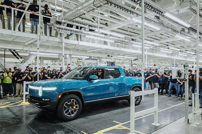 Mẫu xe bán tải chạy điện Rivian R1T đã lăn bánh tại nhà máy của hãng tại Normal, Illinois (Mỹ).