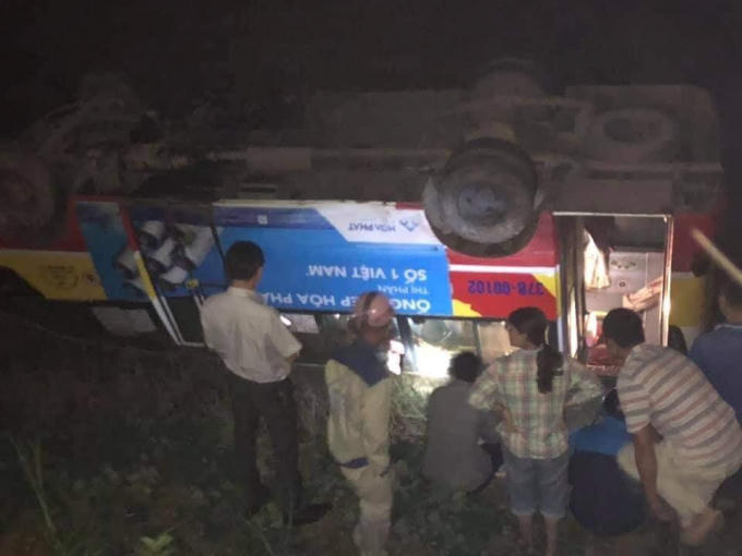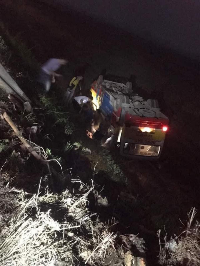 Cú va chạm khiến chiếc xe buýt mất lái rồi lao xuống ruộng bên đường lật ngửa. Tại thời điểm gặp nạn trên chiếc xe có 8 hành khách. Tất cả đều hoảng loạn cố gắng thoát ra ngoài sau vụ tai nạn.