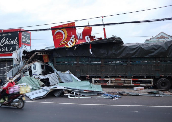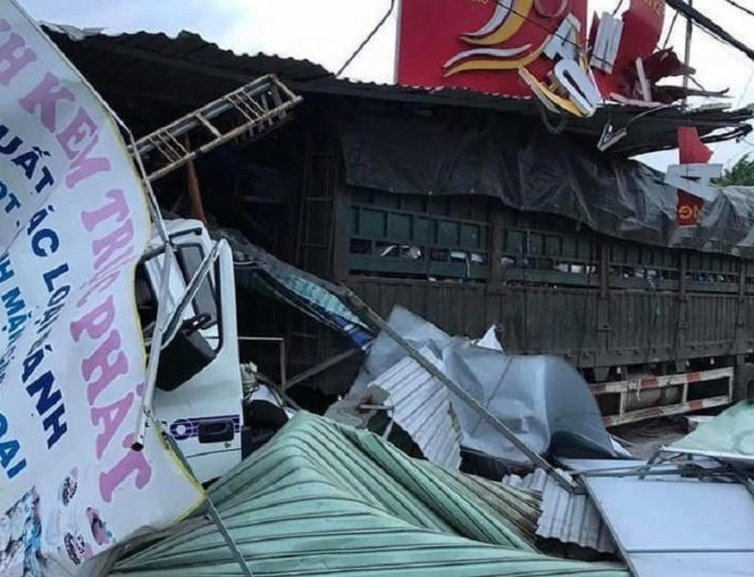 Xe container mất lái tông sập 4 nhà dân ở Bình Phước